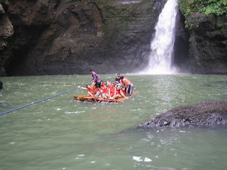 The five-kilometer journey winds through foliage, steep canyons, and deep gorges dotted by cascading waters. The ride culminates at the Pagsanjan Falls. Here, those who don't mind getting drenched can ride the raft which goes right through the thundering waterfalls